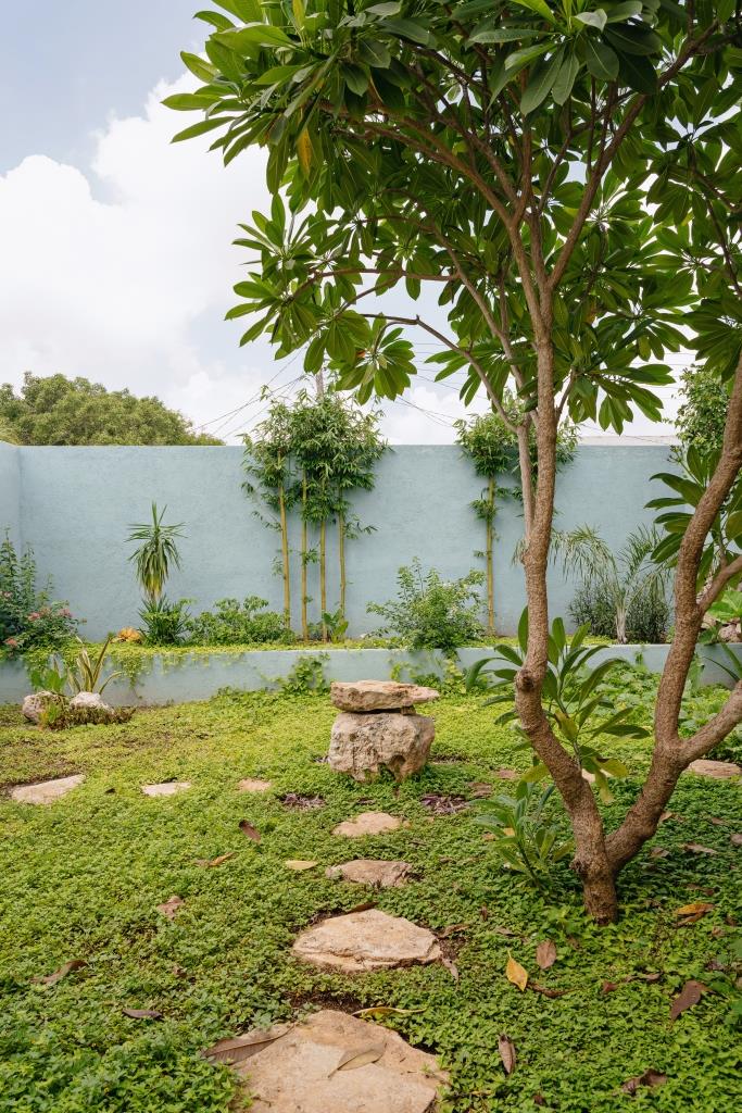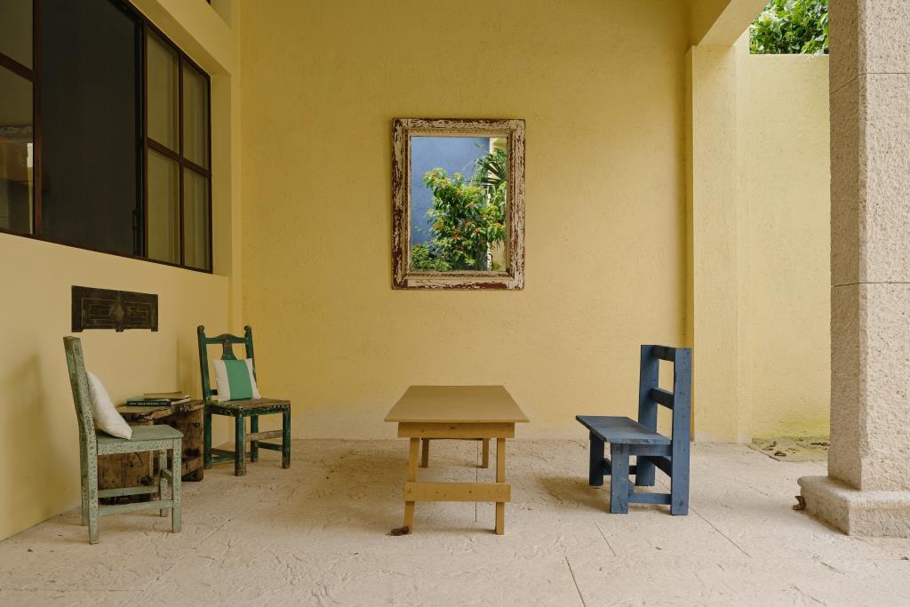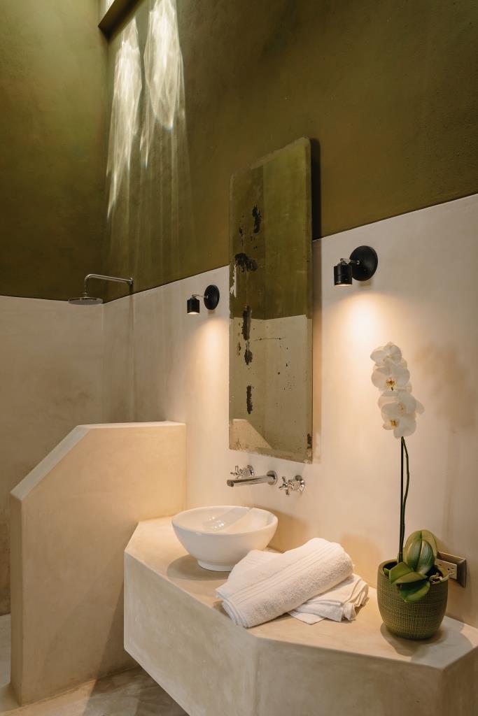 Toward the back, the home opens to the terrace and garden patio, where landscape and architecture meet. The original well was preserved as a historical vestige, alongside the former rooftop water tank reinterpreted as a sculptural decorative element — blending memory with contemporary design.