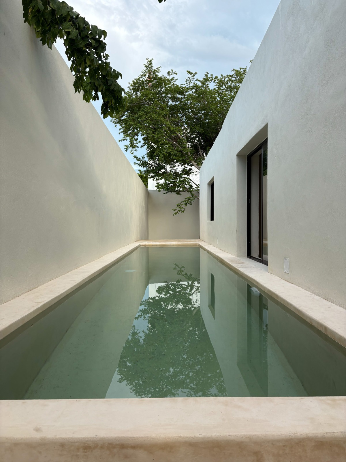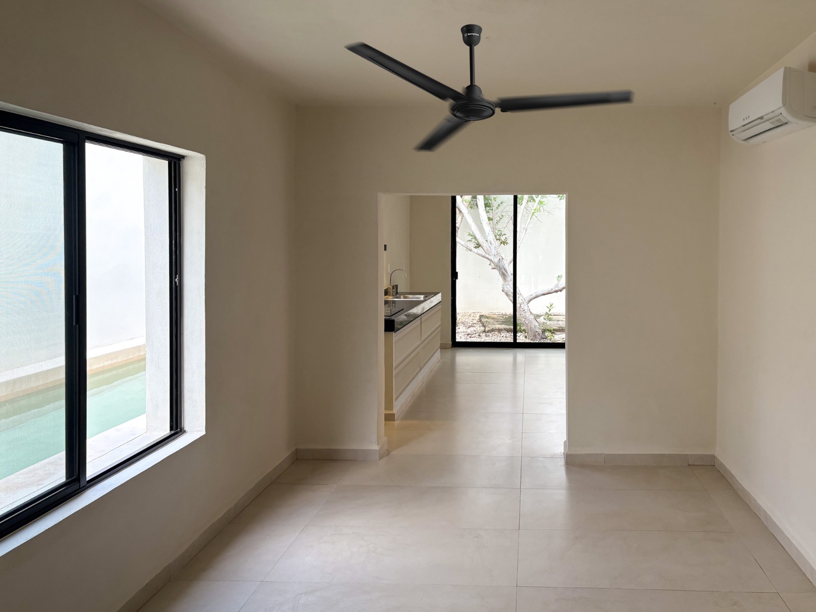 At the front, it features a façade with space for garden and parking spot for one car. Inside the living room with a nice view of the pool, separated dining room and kitchen both with large windows that provide natural light and cross ventilation.